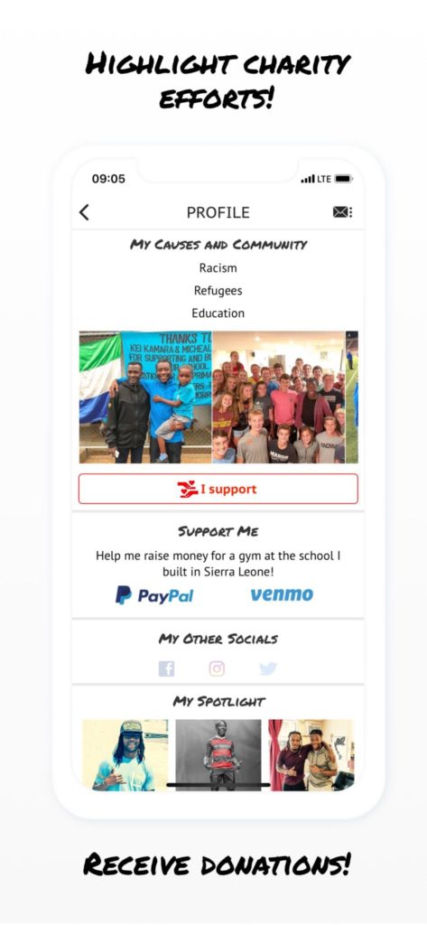 SPRTER wants to be at the forefront of this revolution and help student-athletes highlight their achievements and monetize their talent within the framework of the NCAA. Our sport-specific social media app, SPRTER, includes a crowdfunding section where athletes can do just this through the Support Me section on their profile: